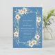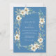 En mjuk akvarelldesign med ömtåliga vinblommor och frodig grönska som omger en förfinad layout. Detta konstnärliga arrangemang frammanar en mild, romantisk stämning, perfekt för en speciell tillställning. Paletten centreras runt lugna blå och krämiga vita nyanser med inslag av dämpad guld.