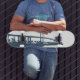 Skateboard med bron som förbinder San Pedro med Long Beach, Vincent Thomas Bridge-grafik från San Pedro. Den här färgfulla bilden av den här berömden är ett originalobjekt som du inte hittar någon annanstans.