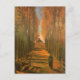 Popplaralle i höst (1884) av Vincent van Gogh är en vintage post-impressionist konstnärlig landskapsnaturmålning. En bondkvinna går nerför en trädbelagd gata med ett hus i slutet av vägen.