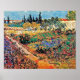Oljya på duk från 1888 visar en landskapsstudie av en trädgård med vallmo och röda blommor omgivna av grönt i förgrunden, blåklockor, orange och gula afrikaner, vita och gula blommor, syren, violetta scabiosor, geranier, solrosor, ett fikonträd, en oleander och en vinstock, och i fjärran svarta cypresser och låga vita hus mot en blå himmel.