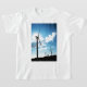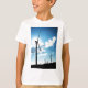 Vind-turbin i bakljuset av sol med blå himmel och moln.