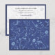 Böjdade stjälkar och blommor i olika nyanser av blått utgör huvudelementet i denna unika inbjudan. En djupblå ram upprepas på både framsida och baksida med blomillustrationen som en vattenstämpel bakom texten. Använd för bröllop, förlovningsfester, födelsedagar eller företagsfester. Finns i alternativa färger med matchande porto och presenter.