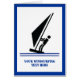 Vindsurfer ombord på ett svart, blått vindsurfing-hälsningskort som visningar en minimalistisk piktogramsikon av en svart vindrutetorkare av silhuette och texten på vit lodrät med blå gräns.Anpassa den och ändra texten med monogram, namn eller ditt meddelande.
