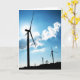 Vindturbinen i baksidaen tänder av solen med blå himmel och moln.