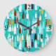 Vinflaskor, mång- färger, turkosbakgrund stor klocka