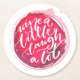 Pappersunderlägg med texten "Drick lite, skratta mycket" på en röd vinfläck. En rolig present till familjen, vänner, möhippa, tjejvecka, födelsedag eller behåll själv. MATCHANDE artiklar i vår kollektion.