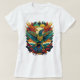 Denna slitstarka t-shirt-design ger en häpnadsväckande illustration av en stor fågel med mycket detaljerad vingar, som flyger mot en bakgrund av vibrerande färg och snurrande mönster. Det är en fängslande design som firar frihet, styrka och naturens skönhet.