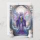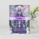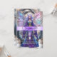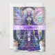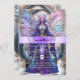 En vacker älvprinsessa har sitt iridescent vingar öppet och står emot en magisk portaldörr. Hon bär en lång blå och lila sten med faux guld och en affärsgren. Hennes långa vita silver-hårkaskader runt axlarna. Hennes händer är utdragen och handflatan i hennes händer står emot. Vita textmallar visas nedan för din anpassningsbar och ett faux glansigt lila band har svarta mallar. Baksidan har samma bild med en extra-textmall för ytterligare ordalydelse eller information som du kan vilja förmedla till dina gäster (anvisningar, logi osv.). Om det inte skulle krävas, stryk helt enkelt ordalydelsen för att lämna den tom. Den här bilden av tecknaden är idealisk för en häxa party, ett Halloween-tema firande, en saga för flickor eller ett magiskt temadag.