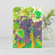 En vacker frukt bröllopsjubileum inbjudan med gröna druvor på vinrankan i en vingård målad med akvarell i djupa lila, blå och vinröda nyanser. Du kan anpassa texten efter dina behov.