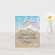 Gulliga dollar för brytning för sjöstjärna som två detta brölloptackkort på en bakgrund av havblått bevattnar, strandsand-, snäckskal-, sjöstjärna- och sand. Insidan av detta kort kan lätt personifieras med din egna bröllopbild och tacka dig meddelandet. Om du behöver hjälp som skräddarsy dessa kort eller extra koordinerande objekt, kontakta precis oss på prettyfancyinvites@gmail.com med din förfrågan. Enfoto version av detta kort är också tillgänglig i den vinkara blåttstranden & sjöstjärnabröllopsamling.
