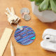 En utskrift från originalet av hand plockade och målad konst. Denna blå, lila och turkokurva, vågig som mönster är en grafisk konsthugga som inspirerades av det mjuka vågarna av havet som överlappar stranden. Perfekt coola färg för tillbehör och för sommar.