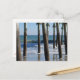 Vinkart avbrott mellan träpålingarna av pir 14 i Myrtle Beach, SC på en solig sen november eftermiddag på det fotografi som förskönar detta föremål.
