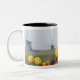 Vinkvarnar och tulpaner längs kanalen in Två-Tonad mugg
