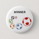 Vinnande fotboll eller fotbollssats med knapp. Vinnartexten kan anpassas. Håll fotbollarna rullande.
