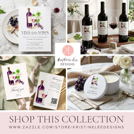 Celebrate the bride-to-be with this charming “Vino Before Vows” bridal shower invitation, featuring elegant watercolor wine illustrations—grapes, a wine bottle, and a glass of rosé. Perfect for winery parties, wine tastings, or sophisticated vineyard bridal showers, this design sets a relaxed and stylish tone for your celebration. Easily personalize the bride’s name, date, time, location, and RSVP details. Designed and illustrated with love by Kristine Lee www.kristineleedesigns.com