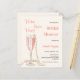 En modern, snyggt och glamorös inbjudan till en Vino före Vows Möhippa. En mjuk kräm, beige bakgrund med ett glas, flute med rosa bubblor och pärlor. Namn är skrivet med ett modernt handskript i stil. Anpassa och lägg till information om party. 1 lakan = 1 inbjudan tryckt kant till kant.