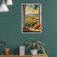 Vinodling genom en fönsterhöst/höst Poster vacker originalbild/skiss/målning av en vinodlarscen, som ses genom ett fönster under höst-/höstsäsong.