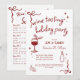 Perfekt för Friendsmas, julfester, vinclubkvällar och högtidsfirande - denna handritade doodle-inbjudan har en bågram med vinflaska, vinglas och druvikoner och innehåller ett poängkort för blindprovning av 4 viner på baksidan. Värdar tillhandahåller viner för provsmakning; gästerna tar med snacks eller en flaska att dela. Fullständigt anpassningsbar text, utskrivbar eller beställ på Zazzle-produkter. Perfekt för avslappnade vinprovningar, blindsmakning av vin under högtider, charcuterie-fester och hemliga julklapps-vinutbyten.