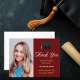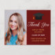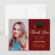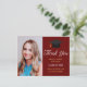 Ett klassiskt anpassat fotografi examens tack-kort i vacker burgunderröd och guld för en gymnasieskola, högskola eller universitet från klassen 2026. Anpassa med din skolas namn och examenklass under den vackra kalligrafin för ett elegant personligt examensfoto i vinrött tackkort med din seniors porträtt.