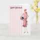 Vintage20-talkvinna i rosaklänninggrattis på kort