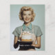 En klassisk kvinna på 1950-talet i stil med glamorerade kurvor och ett ljust leende, med en vackert dekorerad kaka, som framkallar nostalgi och retro charm.