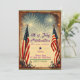 Fira Amerikas födelsedag i stil med Vintagen 4:e juli-inbjudan! Det här anpassadet inbjudan är en perfekt för bak-, familje- och community-firande. Det har en rustisk träutformning på baksidan och en vintage framsida med klassiskt U.S. flaggor och fyrverkerier. Retur ser ge din händelse som en varm och nostalgisk charm. Enkel att anpassa med din händelseinformation. Underbar för Independence day, patriotiskt firande, eller någon annan händelse som hedrar frihet och gemenskap!