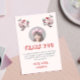 Ett vintage barnkalas tackkort i en könsneutral 50-talsdesign i grått, rosa och rött och mall för ditt eget foto.