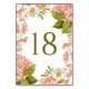 Rustika Nummerering Med Akvarell Hydrangeor I Persika | Anpassningsbara bordskort med akvarellillustrationer av persikahytdrangeor, vita blommor och grönska med elegant skrivstil. Dessa botaniska bordskort är perfekta för vårbröllop, baby shower, bröllops shower och mycket mer.