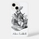 Vintage illustration Victorian Era black and white Classic children's fairy Bilds av Herr John Tenniel i Lewis Carroll's bok Alice's Äventyr i Wonderland, 1865. Den vita kaninen med kostym är i början av bok, tittar i fickklockan, bär en väst och mutar "Åh, kära! Åh, kära du! Jag kommer för sent!" Alice följer honom ner på kaninen hål i Wonderland.