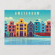 Klassisk Vintage Amsterdam Netherlands Waterfront & Boat Postcard. Den här utskriften ger en illustrerad bild av ett Amsterdamcitysslande från vatten. Enastående utformning, fantastisk perfekt.