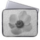Den här väskan till den bärbara datorn fantastisk har ett vackert och detaljerat foto av en Anemone-blomma. Fotografiet har blivit artificiellt färgad och skapar det som en underbar monokrom bild. Bakgrunden består av grått mönster för att ytterligare förstärka effekten.