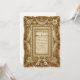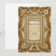 Skapa tonen för en formell sagocélébration med denna överdådiga design med vintage-detaljer och varma neutrala nyanser. Perfekt för traditionella par. Denna design har en rik visuell komposition som påminner om den förgyllda eran. Konsten simulerar en rektangulär ram bestående av invecklad rullning, utskurna rosor och draperade tygsvaglar, renderade i varma beige- och antikkulör. Längst ner i mitten vilar två symmetriska keruber bland pärlstansade detaljer. Typografin kombinerar ett traditionellt serif-teckensnitt med elegant kalligrafiskrift. Detta är en platt tryckt bild med en falsk guldmetalleffekt och präglad textureffekt, inte faktiskt upphöjt material eller metallfolie.