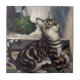 Vintage Animals, Cute Tabby katt snd Butterfly Kakelplatta