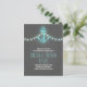 Romantiska nautiska spara datum vykort med vintage ankar, turkos blå strängljus och svart tavla bakgrund. Perfekt spara datum för nautiska, strand och destination bröllop