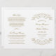 Dekorativa snurrar och blomstrar ram denna elegant vintage inspirerade till utformningen av ceremoniprogrammet i bröllop. Vit bakgrund med antika guld design. Anpassa anpassningsbarna till brudens sida, ceremoniinformation och tack för ditt budskap. Obs! Dessa pappra textviktsprogram anländer jämnt och kräver vikning för att samlas ihop.