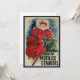 Vintage illustration Art Nouveau-reklamblad Pastilles Geraudel av Jules Chéret, 1895. Denna produktreklamdesign visar en glad och frisk kvinna i en klarröd klänning som bär en paraply medan det snöar under en vinterstorm. Hon håller en behållare med hostdroppar från Geraudel. Texten lyder "Si vous toussez prenez de Pastilles Géraudel."