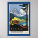 Mycket söt vintage resor poster från de österrikiska transportmyndigheterna. Det visar ett band av människor som spelar sina musikinstrument med sjö och berg i bakgrunden.