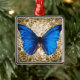 Utformning av ett vackert, stort, midnattsblått munkslakteri mot vintagens fuktmönster stil. Den här konstdesignen visar den naturliga vibrationen färg i fjäril och har vintagens känsla.