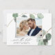 Modern vintage-fotoeukalyptus bröllop spara datum i eleganten.
