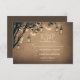 Vintage bröllop OSA kort med eldflugor är Mason burk och twinkle ljus hängande på träd grenar.
