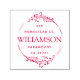 Den här returadressen är frimärke perfekt för alla som tittar för ett vackert posttillbehör för sitt speciella brev, som bröllop eller födelsedagsinbjudningar eller viktig affärskorrespondens! Den här designen har en rustik blommigt-andedräkt runt ditt efternamn i mitten, i klassbokstäverna och returadressen ovanför och under i en modernare mindre typografi. Du kan anpassa mallen genom att klicka på knappen "Anpassa den här mallen" och ändra informationen.