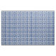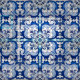 Vintage Azulejo Tile-Blommönstret i blått och vitt, som transporteras till yta i Fabric och bevarar dess historia och tradition. Azulejo är en form av portugisiskt eller spanskt målat, ytglaserat, keramiskt tileverkeri. Det har blivit en typisk aspekt av den portugisiska kulturen. Portugal importerat azulejoplattor från Spanien och deras använda var utbredd i religiösa och privat arkitektur, särskilt på fasader.