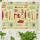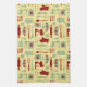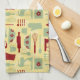 Vintage Baking kökshandduk med en söt vintage färgad stil mönster med bakverk och enkla blommor i gult, grönt och rött. Du kan göra mönster större eller mindre på kökshandduken.