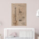 Ett tekniskt patentdiagram över en uppfinning för ett nytt stil av banjo från 1896 som har varit designad för väggkonst på vintage stil.