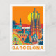 This vibrant retro postcard illustration of Barcelona, Spain. Inspired by 1960s European travel posters, the artwork uses clean lines and bold shapes to create a nostalgic vibe. A perfect gift or keepsake for lovers of architecture, design, and Spanish culture.