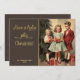 Retro-illustration med tre barn med presenter framför Julgran. På den lämnat sidan finns det en Julhelg hälsning. En vacker vintage för dina julhälsningar! Anpassa kortet med ditt namn och år eller ta bort provtexten. BEHÖVER DU HJÄLP? Om du behöver en ändring eller anpassning eller hjälp med grafiken kan du kontakta mig. (klicka på namn i min butik och klicka på "Meddelande").
