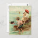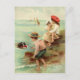 vintage av historiska barn i kläder på 1800" som varje dag väller bort på stranden och leker med husets vykort för hund