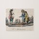 Vintage bild kommer från ett antikt barns bok. Dessa små marionetter handlar för barnen som noga tittar på den lilla scenuppvisningen av de underbara små, stringade marionetterna.
