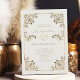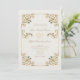 Denna vintageinspirerade, eleganta bröllopsinbjudan utstrålar lyx med sin elfenbenscrème och guld färgskala. Med intrikata barocka blommönster och en romantisk rep-hjärtdesign kombinerar den tidlös glamour med utsmyckade detaljer, vilket gör den till det perfekta valet för en sofistikerad och förtrollande fest.