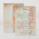 Vintage Baroque mexikanska spetsdetaljer Konst ger en varm, arvsberättad elegans till detta bröllopsföljekort, som blandar det romantiskt präglade barockrullverket med de mjuka vattenfärgstrukturerna. Denna design framhäver ditt mexikanska barocktema vackert, samtidigt som den integrerar sekundära nyckelord som rustik spetsbröllop och handgjorda blomstrukturer för ökad synlighet i sökningar. Framsidan visar en gobeläng i creme, rosafärgade, lera och himmelsblå toner, berikad med graverade utsmyckningar, vintage spetsmotiv och mjukt slitna kanter som frammanar gammal världskonstnärskap. Perfekt för att para med inbjudningar, save the date-kort, RSVP-kort och kuvert från samma svit, ger detta följekort ett genomtänkt sätt att dela information om mottagningen, boende, vägbeskrivningar eller ytterligare information med dina gäster.
